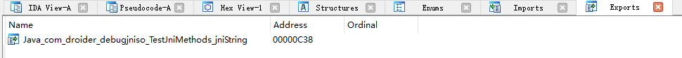 这里我们再次打开一个 ida,导入该 apk 的 so 库,然后在 export 中寻找我们的函数,如下