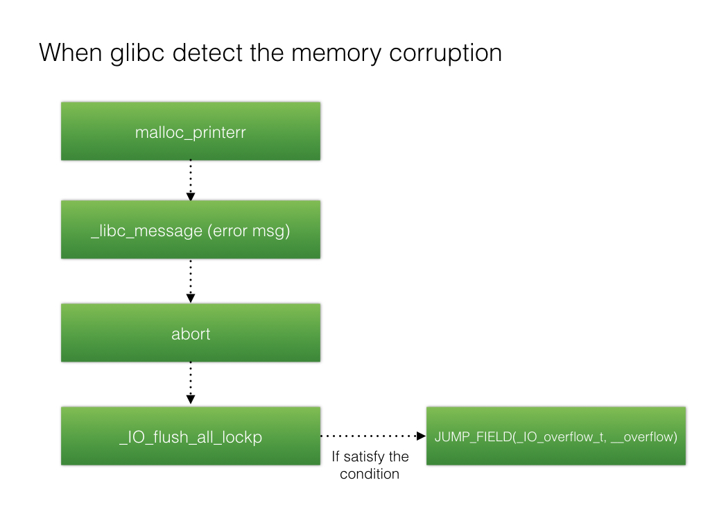 而_IO_flush_all_lockp不需要攻击者手动调用,在一些情况下这个函数会被系统调用: