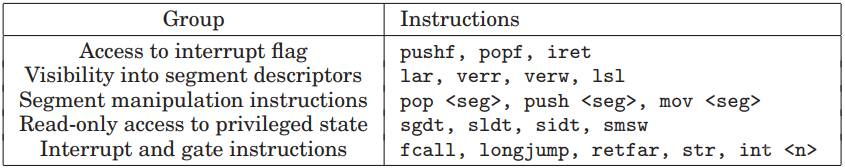 这些指令直接违反了 Popek and Goldberg virtualization requirements ,从而使得 x86 不是一个可以虚拟化的架构。