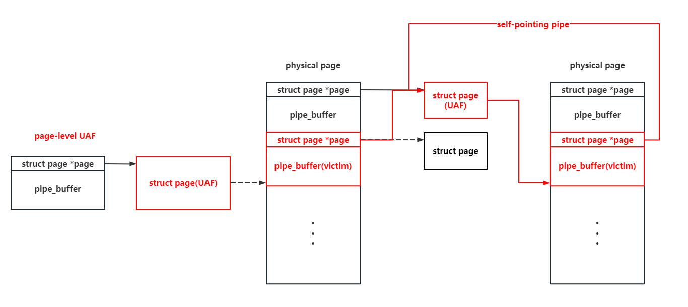 Page-level UAF 同样是针对 buddy system 的利用手法,这种攻击手法主要指的是对内存页结构体 page 的释放后利用,例如我们可以通过内存页重分配的方式将 UAF page 分配为指定 kmem_cache 的 slub pages ,从而实现无需任何限制的跨 kmem_cache 的 UAF 利用。