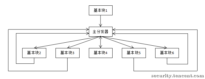 控制流平坦化¶ 简介¶ 控制流平坦化(control flow flattening)是作用于控制流图的代码混淆技术,其基本思想是重新组织函数的控制流图中的基本块关系,通过插入一个“主分发器”来控制基本块的执行流程,例如下图是正常的执行流程: 经过控制流平坦化处理之后便变成了这个样子,由一个“主分发器”负责控制程序执行流: 通过控制流平坦化,基本块间的前后关系将被混淆,从而加大了程序逆向分析的难度。更多关于控制流平坦化的实现细节可以参考这篇论文. 利用符号执行去除控制流平坦化¶ 待施工。 Reference¶ 腾讯安全应急响应中心 - 利用符号执行去除控制流平坦化 OBFUSCATING C++ PROGRAMS VIA CONTROL FLOW FLATTENING